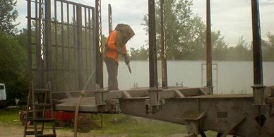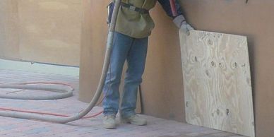Abrasive blasting commonly known as "SANDBLASTING" is the process of using compressed air to propel the desired media at any surface to clean coatings, rust, debur materials or prepare a surface for a wide variety of coatings.